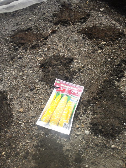 トウモロコシと枝豆の種まき