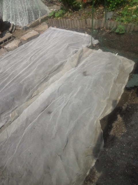 最後に発芽までは、防鳥対策として寒冷紗をかけておきます。