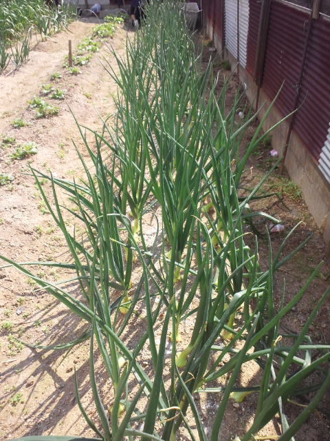 あと1ヶ月ほどで収穫期。100コ近い玉ねぎが取れる予定です。