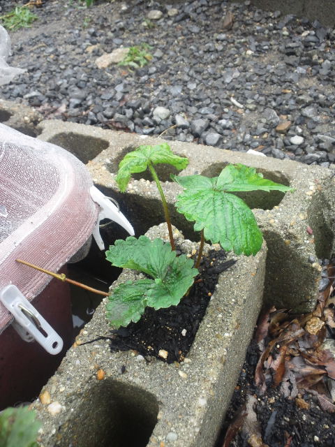 昨日植えたイチゴ苗も水をタップリもらい、シャキッとしました。