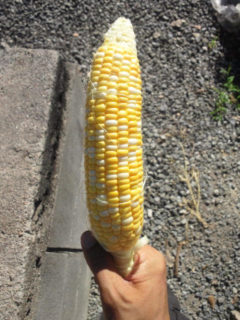 トウモロコシも立派に実ってます。