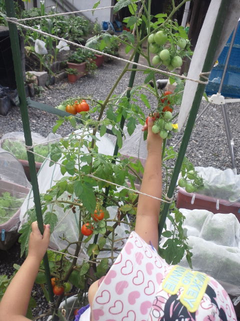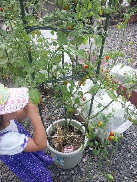 娘は、幼稚園から持って帰ったトマトで赤くなったのを最初に食べるのでお腹が膨れるのでしょうね。