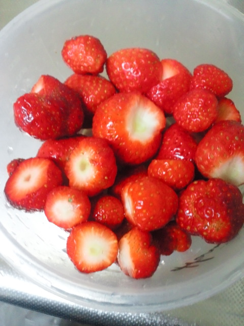 ここ数日娘が熱で寝込んでいたので、熟したイチゴがたくさんになりました。