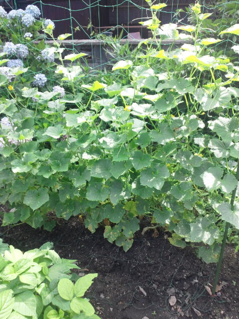 めちゃなりキュウリとめちゃなりナスビをそれぞれ3株づつ植え付けてます。