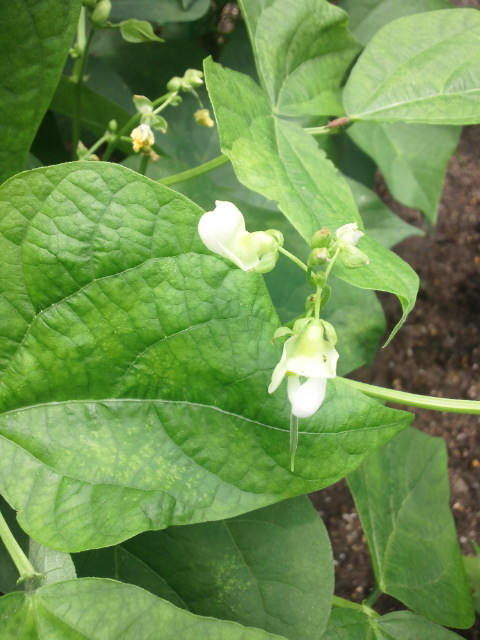 初めて栽培しているツル無しインゲンの花が咲きました♪