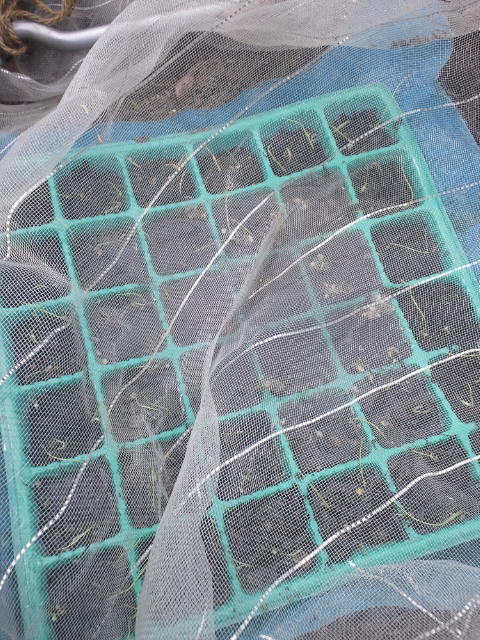 週末に子供達と育苗トレーに蒔こうとしたら、すでに葉まで出てしまってました。