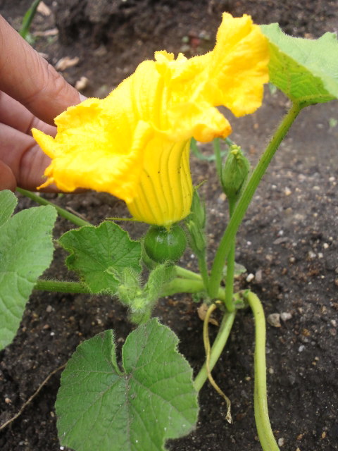 かぼちゃは、雌花を人工受粉しなくては、実が出来ません。