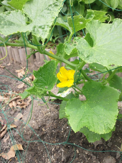 菜園レポート(かぼちゃの花とキュウリの実り)